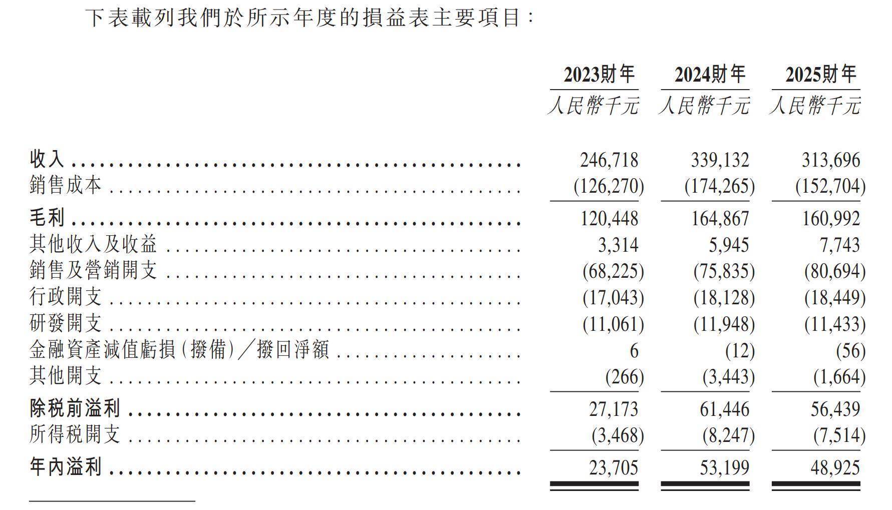 于2023财年、2024财年、2025财年,齐云山年内溢利分别为2370.5万元、5319.9万元、4892.5万元人民币。
